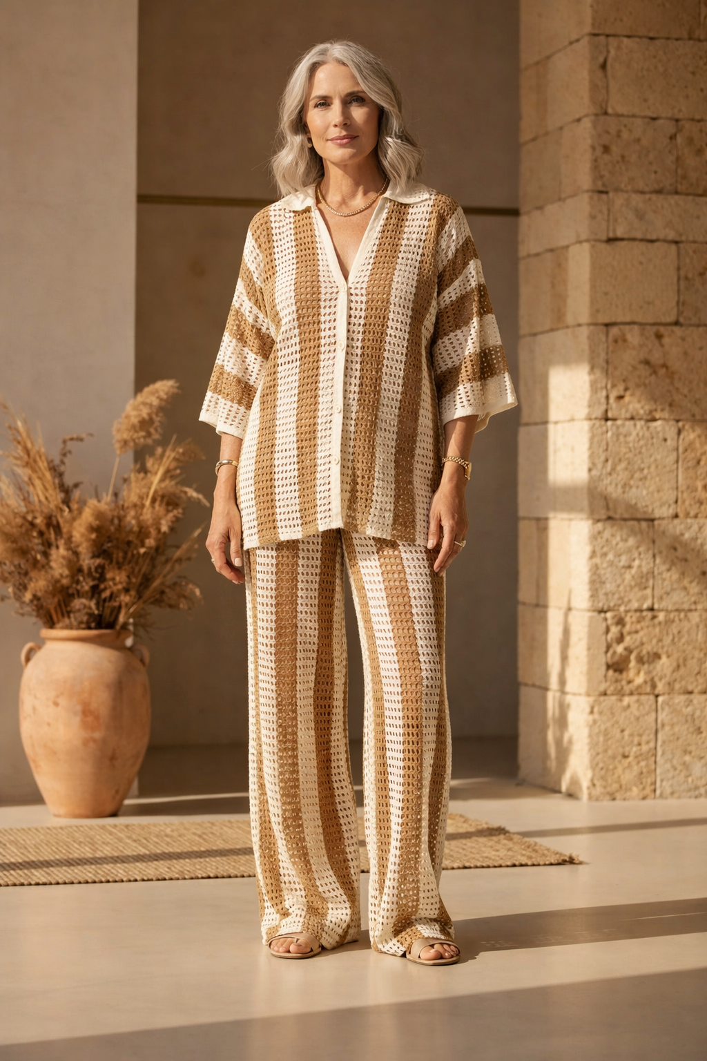 Lightweight Crochet Design: Featuring a crochet-inspired pattern, this set offers an airy, relaxed fit perfect for sunny days.